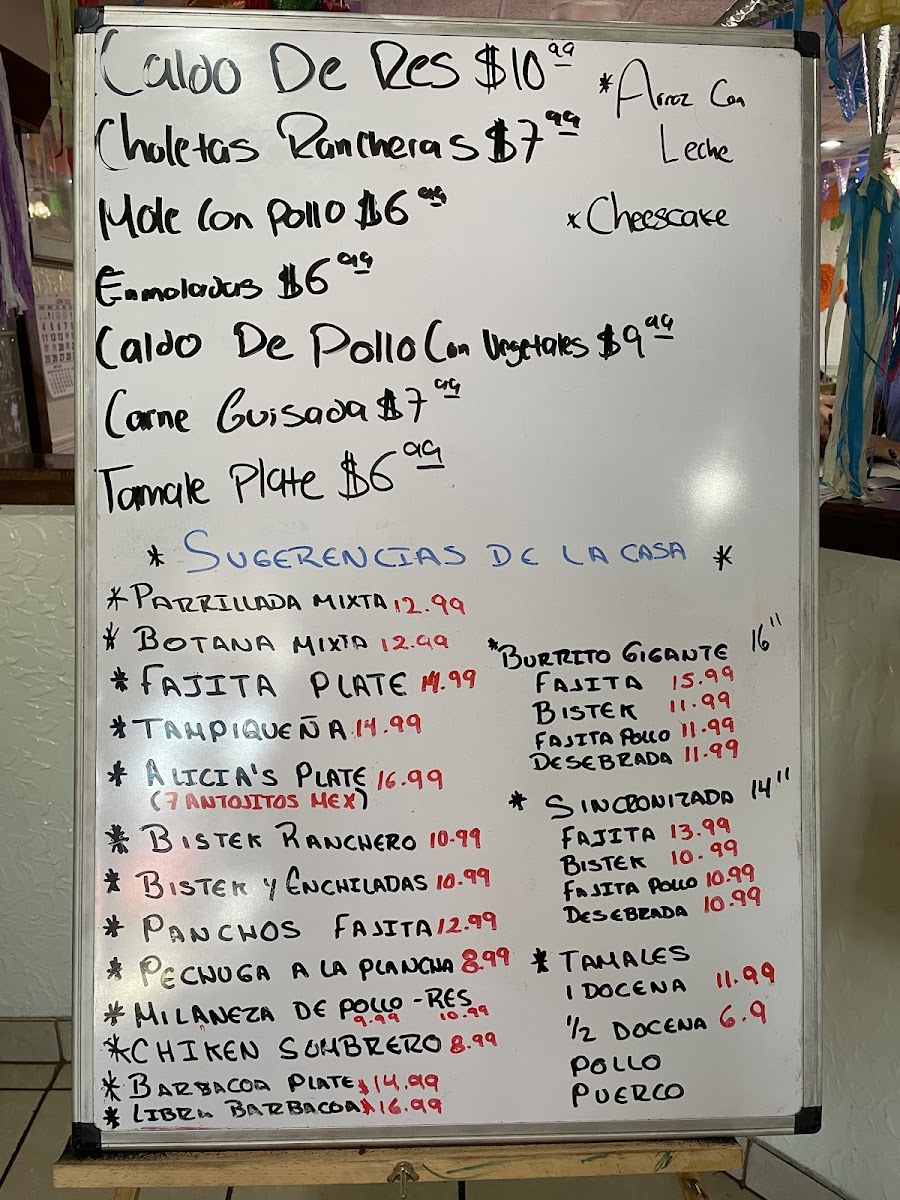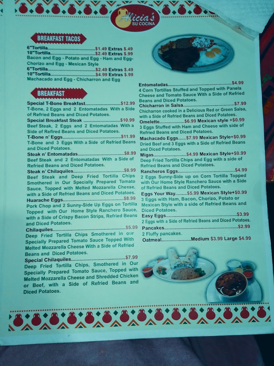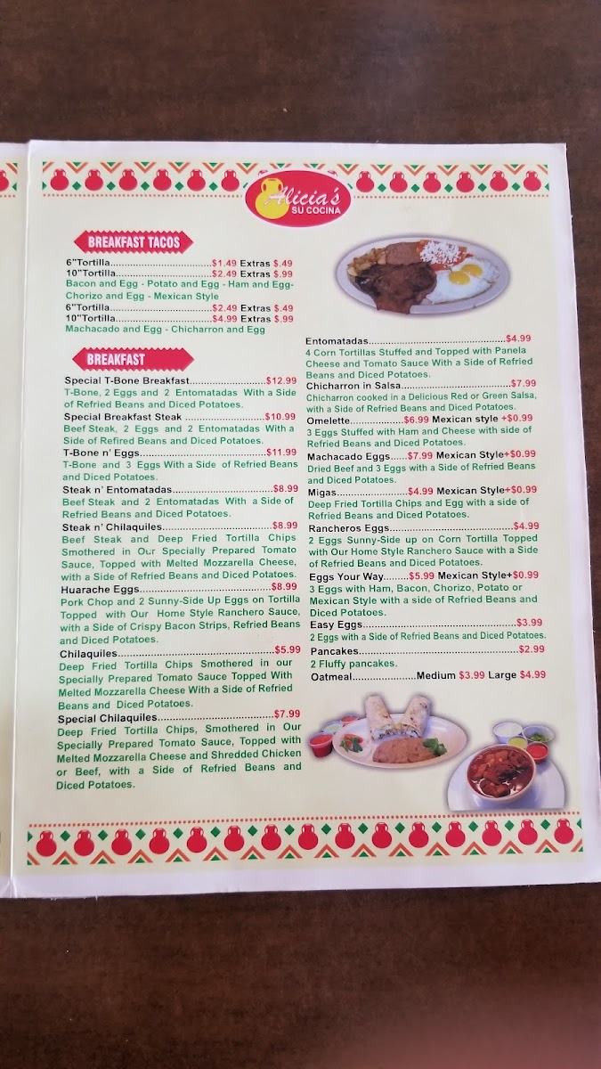 Alicia's Su Cocina McAllen Menu